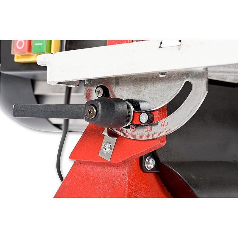 The Axminster Workshop AW300DS disc sander equips you with reliable performance for accurate sanding tasks in the workshop. A 300 mm diameter aluminium disc spins at 1,420 rpm, driven by a quiet 750 W induction motor that includes a disc brake to slow the disc reasonably quickly after use. The machine also features a no-volt-release (NVR) switch for added safety by preventing unexpected restarts. The cast iron sanding table offers a ground top surface for smoothness and includes a slot to accommodate the supplied mitre fence. This unique mitre fence provides two faces at 90° and enables left-hand and right-hand 45° bevels without any need to reset the fence, which saves time and improves accuracy during angled sanding. The table tilts from 0° to 45° and locks securely on both sides to support bevelled workpieces firmly. Efficient dust extraction occurs through a 63 mm outlet, and the sander comes supplied with a 450 mm length of flexible hose for straightforward connection to a vacuum extractor or similar system. Overall, the AW300DS delivers a solid, weighty, and stable platform that excels at sanding to a line and handling similar precision tasks. Self-adhesive abrasive discs in a wide range of grits fit the disc easily, and you can remove them complete with their glue by gently warming them with a hot air gun or hair dryer. Please note that this machine is designed and manufactured specifically for sanding wood and similar materials; operators must not use it to abrade or grind metal.