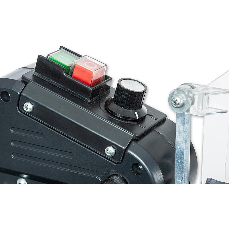 The Axminster Workshop AW457SS scroll saw delivers versatility and precision, making it an ideal choice for intricate woodworking projects and beyond. A 120 W motor powers smooth, accurate cuts with a 20 mm stroke length, while the variable speed control adjusts from 550 to 1,550 strokes per minute so you tailor the speed precisely to the material and task at hand. This setup allows you to cut materials up to 50 mm deep with confidence. The large 350 mm x 540 mm table, combined with a 457 mm throat depth, accommodates bigger workpieces comfortably and tilts 45° in both directions to enable bevel cutting from either side. For internal pierced cuts, the arm raises easily to provide quick and convenient blade threading through starter holes. The base and table, constructed from heavy-gauge steel plate, offer excellent stability and noticeably reduce vibration during operation. Blade clamps remain easily accessible, simplifying changes whether you use pinned or plain-end blades. A 37 mm dust extraction outlet (31 mm I.D.) connects directly to a vacuum extractor to keep your workspace clean and free from debris. This scroll saw handles wood, metal, and plastic effectively when fitted with the appropriate blades, adding broad material compatibility to its workshop value.