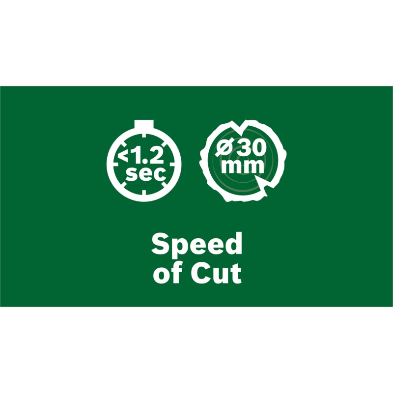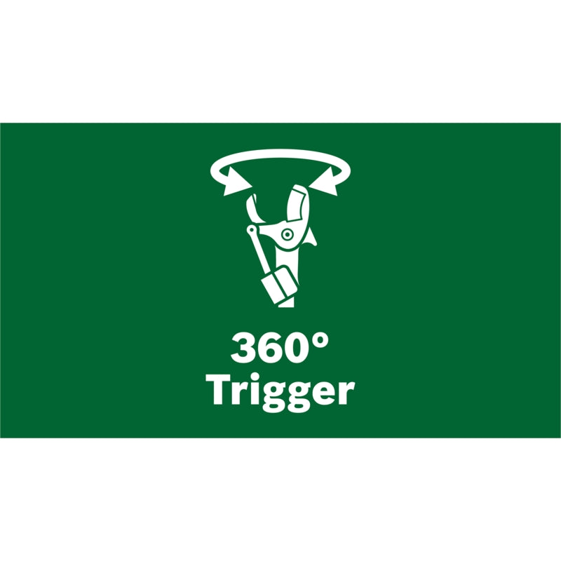 The Bosch AdvancedPrune 18V-45 Cordless Pruner is engineered for efficient, clean, and comfortable pruning. Powered by an 18V battery system, it delivers strong cutting performance for branches up to 45mm thick. The Quick Cut Technology ensures fast, precise, and effortless cuts, while the 360° trigger allows convenient positioning at any angle. Designed for flexibility, the pruner features an extendable handle ranging from 1.2m to 1.8m, making it easy to reach both low and high branches. Its stainless steel bypass blades guarantee durability and clean cuts, ideal for maintaining healthy plants. In addition, the integrated LED battery indicator displays the charge status clearly, and Syneon Technology optimises energy use for extended runtime. Compatible with the POWER FOR ALL ALLIANCE system, this bare tool can share batteries across multiple Bosch 18V tools.