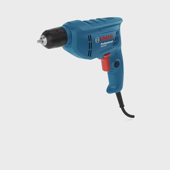 The Bosch GBM 400 Professional is a slim and compact corded rotary drill designed for efficient drilling and screw-driving in wood, metal, and plastic. Its robust 400 W motor provides powerful performance, enabling smooth work even under high load. The ergonomic, slender design ensures comfortable one-handed operation and allows drilling in tight spaces such as cabinets or corners. High speed ensures rapid drilling and screw-driving, while the keyless chuck allows for quick accessory changes, maximising productivity and flexibility on the job.