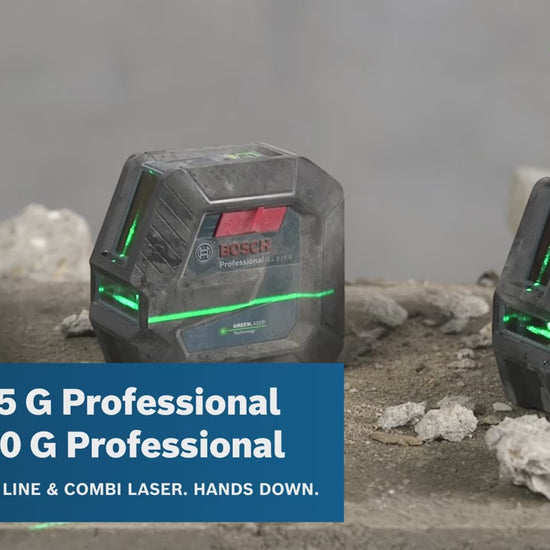 The Bosch GCL 2-50 G Professional simplifies alignment and transfer work on-site. Its durable rubberised housing and recessed glasses combine with dust and splash water protection (IP 64) to withstand tough conditions. The ON/OFF switch and one-button keypad ensure straightforward operation, while the always-activated laser receiver mode lets you start immediately. In addition, highly visible green laser lines and green plumb points improve visibility in brighter environments. Fast and secure mounting using the RM 10 Professional rotating mount — which features very strong magnets — enables precise positioning of laser lines around plumb points. Consequently, the GCL 2-50 G is ideal for tasks such as building framework for drywall, mounting sockets and doors, and point transfer for light mounting.