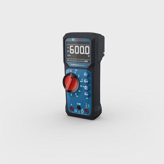 The Bosch GDM 600-15 Professional Digital Multimeter is engineered for reliable performance and precision across diverse electrical applications. With True RMS measurement capability, it provides accurate readings of AC and DC voltage, current, resistance, frequency, and capacitance. The large inverted LCD display ensures excellent visibility in all working conditions, while the compact, ergonomic design allows comfortable one-handed operation. Built to withstand tough jobsite environments, the GDM 600-15 features an IP65 rating for superior protection against dust, water, and impact. It also includes a durable rubber housing capable of withstanding drops from up to 2 m. For hands-free operation, the multimeter is equipped with a practical kickstand and a separate magnetic hanging solution. Ideal for electricians, HVAC technicians, facility managers, and electronics professionals, this tool simplifies electrical installations, maintenance, and troubleshooting. With Min/Max/Average recording, users can monitor signal fluctuations effectively, ensuring greater control and diagnostic accuracy. Additionally, the GDM 600-15 includes flexible silicone measuring leads and is tested to CAT III 600 V standards for safety and dependability in professional use.