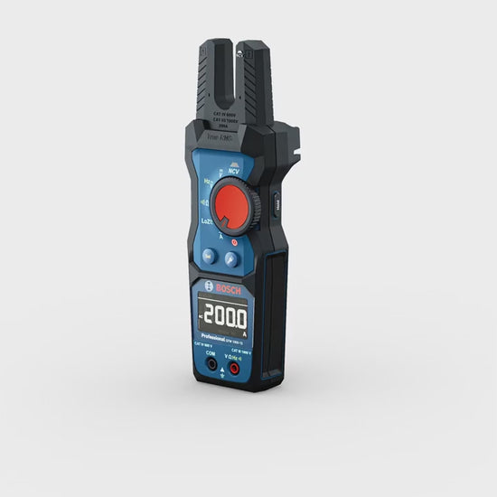The Bosch GFM 1000-15 Professional Fork Meter is a compact and durable measuring tool ideal for electricians and HVAC technicians who require quick and efficient AC current and AC/DC voltage measurements. Its open jaw design enables non-invasive measurement of AC current up to 200 A without the need for test leads, allowing faster and safer operation. This versatile instrument measures current AC, voltage AC/DC up to 1 000 V, resistance, continuity, and frequency, with LoZ V AC/DC functionality for accurate diagnostics. Built with IP54 protection, the fork meter withstands tough conditions and accidental drops from up to 2 m, making it a reliable choice for demanding work environments. The inverted LCD screen ensures clear visibility in low-light conditions, while the ergonomic grip reduces fatigue during extended use.