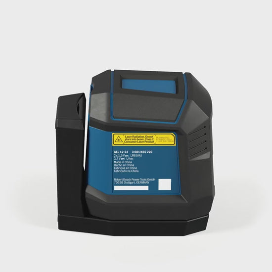 Equipped with Dual Power Source technology, the GLL 12-22 can operate using 2x AA alkaline batteries or the optionally available 3.7 V Li-Ion battery pack BA 3.7V 1.0Ah A Professional, allowing uninterrupted use and increased flexibility. The tool projects two highly visible red laser lines and features a self-levelling range of ±3.5° with a levelling time of 6 seconds. With a working range of up to 12 m, it is ideal for accurate alignment of electrical switches and the precise positioning of metal and wood studs.