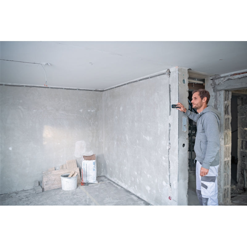 The Bosch GLM 50-27 C Distance Laser Measure Professional is engineered for tough environments, providing reliable measurements even under harsh conditions. Its IP65-certified design and shock-absorbing rubber housing protect it from dust, water, and 1.5-metre drops on hard surfaces. For enhanced efficiency, Bluetooth® connectivity and the Bosch MeasureOn App enable seamless documentation and quick data transfer, simplifying workflow on-site. Additionally, the intuitive colour display and help function facilitate easy operation, while the device’s increased battery runtime, sound, and vibration feedback ensure every measurement is verified. Ideal for architects, electricians, and other professionals, it supports accurate documentation, material calculation, and precise placement of room and wall elements.