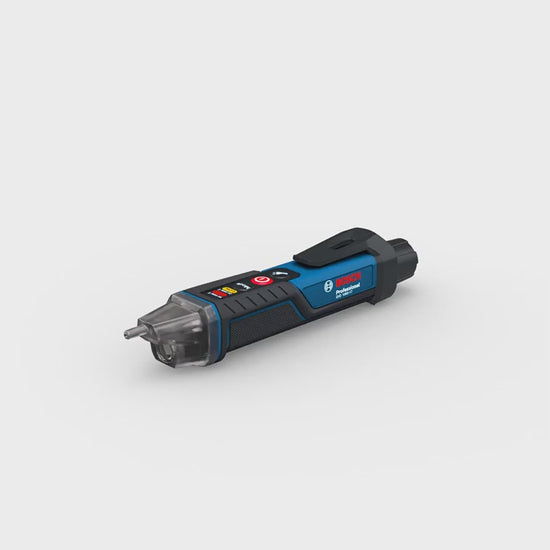 The Bosch GVD 1000-17 Professional Non-Contact Voltage Tester ensures maximum safety and efficiency for electricians and professionals working with electrical installations. Its IP67-rated housing protects against dust and water immersion, while the rubberised casing safeguards the tool against drops from up to 2 m. The dual voltage detection range from 24 V to 1000 V AC provides high sensitivity for low-voltage applications and versatility for higher-voltage tasks. Additionally, the tool performs an automatic self-test at startup and every five seconds during use to ensure reliable operation. Integrated features like a flashlight, acoustic and vibration alerts, and a tip that glows red, orange, or green provide clear voltage indication, making it simple to work safely even in low-light or challenging environments. CAT IV 1000 V tested, the GVD 1000-17 is essential for quick voltage checks, troubleshooting, and verifying electrical installations.