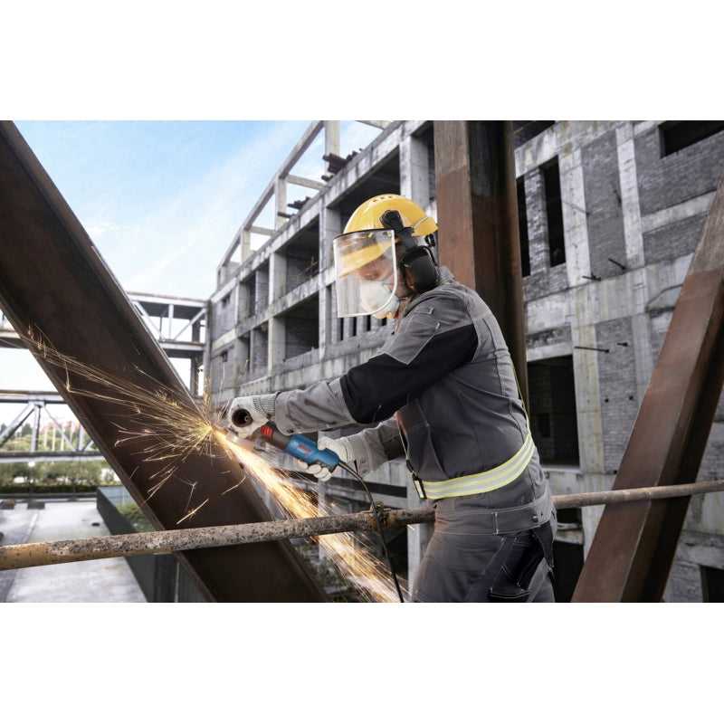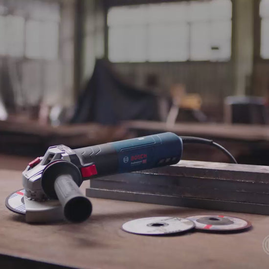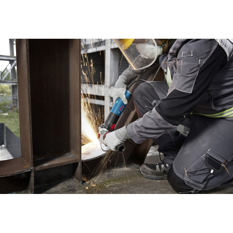The Bosch GWS 20-125 SB Professional brushless small angle grinder delivers exceptional power and reliability for demanding industrial metalworking tasks. Equipped with a 2,000 W industrial-strength brushless motor, it ensures maximum productivity and long service life. Its robust, sparkless design keeps maintenance low, while the ergonomic 190 mm (7.5”) barrel handle and lightweight 2.4 kg body reduce operator fatigue. This angle grinder also features comprehensive safety systems, including an intelligent brake system, soft start, restart protection, KickBack Control, overload protection, Drop Control, and Vibration Control. The HMI function provides real-time status updates, allowing users to work efficiently with full tool oversight. It is ideal for applications such as cast-iron grinding and cutting, mold grinding, surface deburring, and processing weld seams and splatter, making it an indispensable tool for professional metalworkers.
