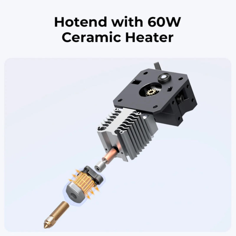 Featuring hands-free automatic levelling, a 60W ceramic hotend, and dual cooling fans for rapid and even cooling, the Ender-3 V3 KE guarantees superior print quality across multiple materials. It offers advanced connectivity options, including Wi-Fi, LAN, and USB, allowing seamless control through the Creality Cloud App or Creality Print software.