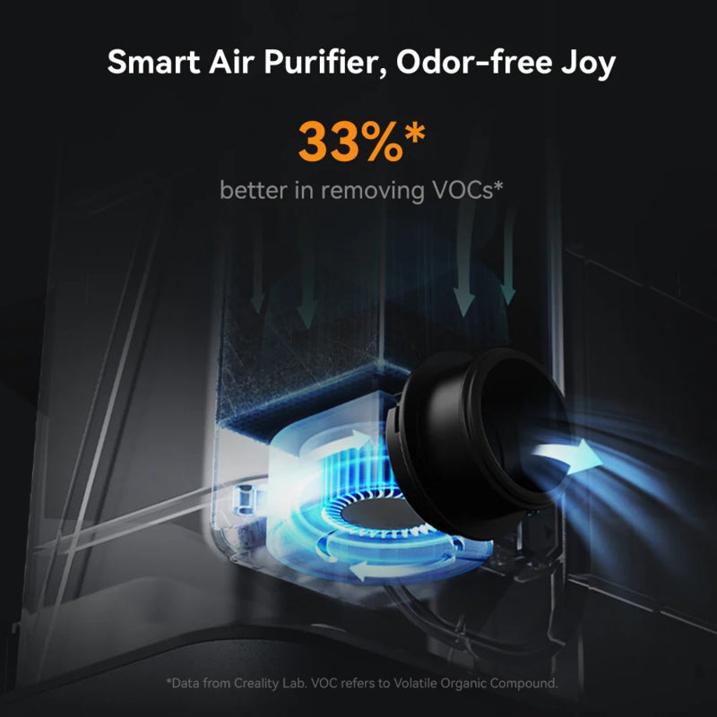 The laser-carved aluminium build plate ensures strong adhesion and easy part removal, while the non-slip adapter maintains consistent levelling tension. The HALOT OS operating system allows seamless control from PC or mobile via Creality Cloud, supporting remote monitoring and model downloads. Furthermore, its built-in air purifier efficiently filters resin odour using activated carbon, creating a cleaner and safer printing environment. For added convenience, users can opt for the Smart Resin Pump, which automates resin filling and withdrawal, reducing manual handling.