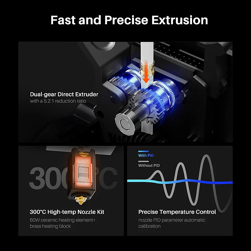 Extruder: Dual‑gear direct drive extruder