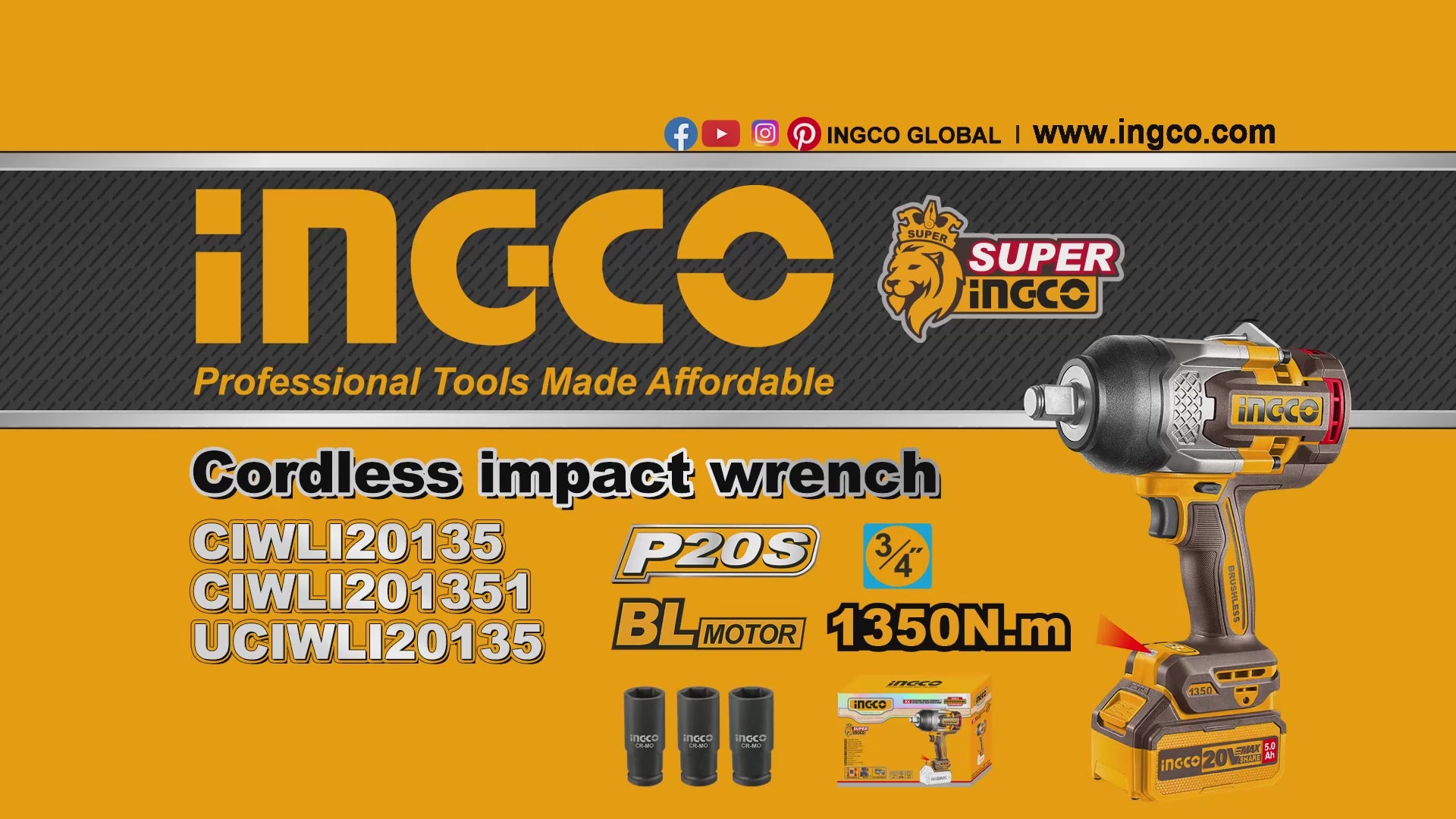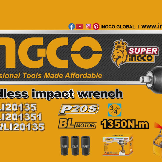 The Ingco 20V Brushless Cordless 3/4" (19mm) Square Drive Impact Wrench 1350Nm (Solo Unit) is designed for professional users requiring superior torque and durability. Equipped with a high-performance brushless motor, it ensures maximum efficiency, reduced maintenance, and extended tool life. The tool offers three adjustable speed and impact settings: 0–900, 0–1 200, and 0–1 800 rpm, with corresponding impact rates of 0–1 800, 0–2 000, and 0–2 200 bpm, allowing flexibility for a wide range of fastening and loosening tasks. Delivering a maximum fastening torque of 1 350 Nm and an impressive nut-busting torque of 1 900 Nm, this impact wrench provides powerful and consistent results for demanding applications.