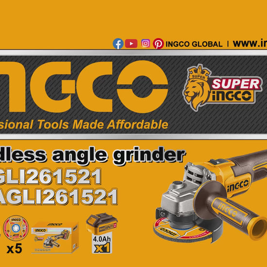 The Ingco 20V Brushless Cordless Angle Grinder is designed for reliability, efficiency, and portability. Equipped with a robust brushless motor, it delivers a maximum input power of 900W and provides adjustable no-load speeds of 3 000, 6 000, and 9 000 rpm for precision across a range of tasks. Its 115mm disc diameter offers versatility for cutting and grinding applications, while the M14 spindle thread ensures compatibility with standard accessories. The kit includes a powerful 4.0Ah lithium-ion battery and charger, ensuring continuous operation without the need for cords. This complete solution is ideal for professionals seeking performance, flexibility, and convenience on the job site.