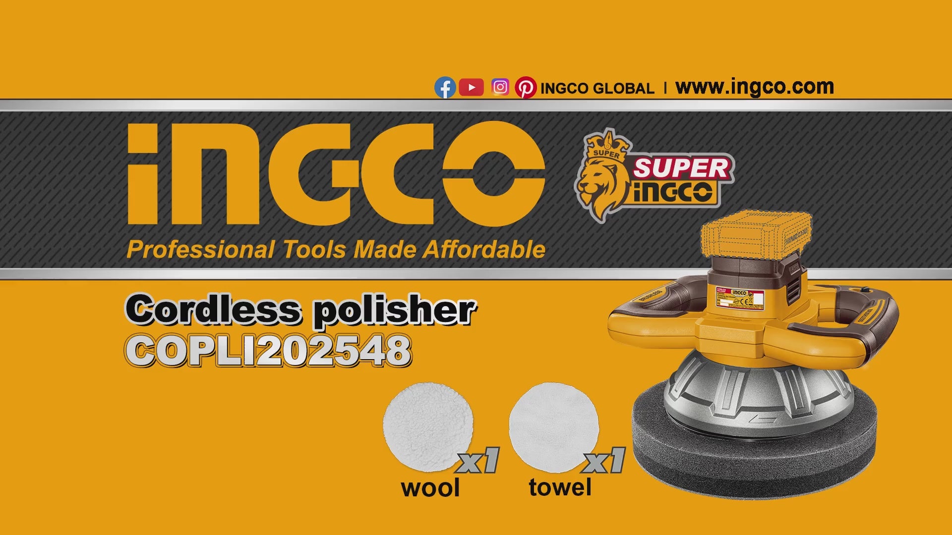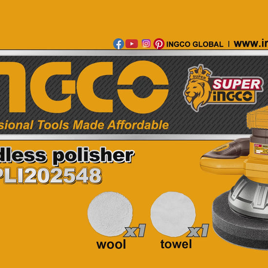 The Ingco 20V Brushless Cordless Polisher 254mm (Solo Unit) is designed to provide professional-level polishing power with the convenience of cordless operation. Its brushless motor ensures longer motor life, reduced maintenance, and consistent speed under load. With a no-load speed of 2,500 rpm and a 254mm polishing disc, it handles a variety of polishing tasks efficiently. The 5mm eccentric distance allows for smooth, swirl-free finishing on automotive paint, marine surfaces, and workshop materials. This polisher is lightweight and portable, ideal for precision work, though the battery and charger are sold separately.