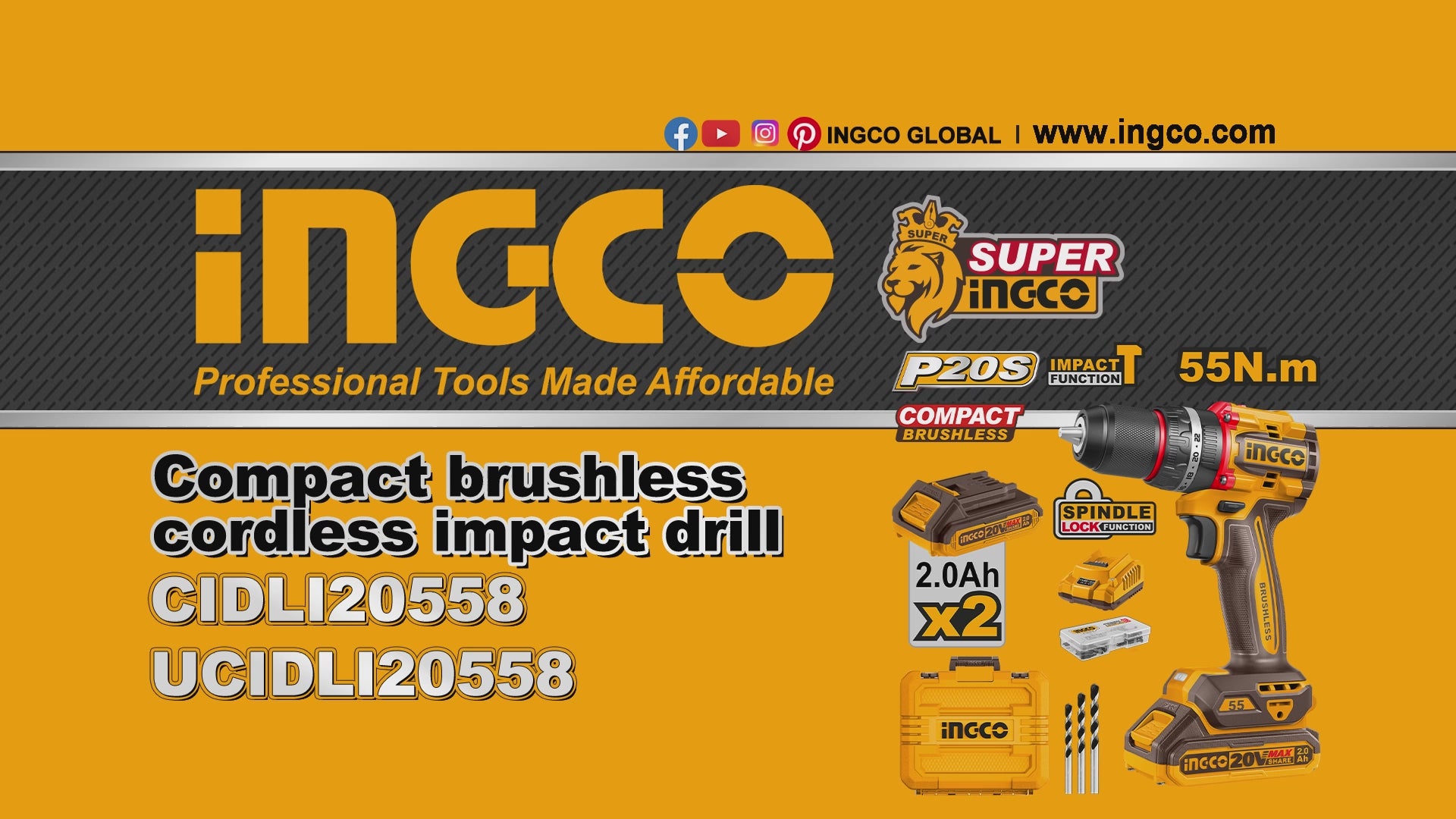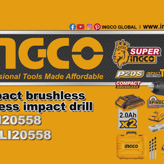 The Ingco 20V Compact Brushless Cordless Impact Drill 55Nm, 2.0Ah Kit is built for versatility, precision, and durability. Featuring a powerful brushless motor, it provides superior efficiency and extended service life compared to brushed models. The mechanical 2-speed gearbox allows users to choose between low-speed (0–500 rpm) and high-speed (0–2 000 rpm) settings for greater control across different materials. Delivering up to 55 Nm of torque and a maximum impact rate of 30 000 bpm, this impact drill performs exceptionally well in both drilling and screwdriving tasks. Its durable 13mm (1/2”) metal chuck ensures firm bit retention, while the 22 + 1 + 1 torque settings enable fine-tuned adjustments for precision work.