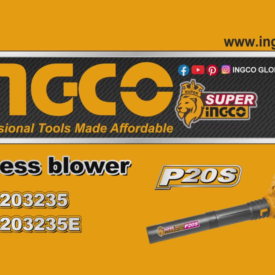 The Ingco 20V Cordless Blower 8.5m³/min delivers reliable performance and convenience for both indoor and outdoor cleaning tasks. Designed with a high-efficiency motor, it operates at a no-load speed of 15 000 rpm, providing strong and steady airflow for clearing leaves, sawdust, or debris from surfaces. The unit’s cordless design ensures flexibility and freedom of movement, while its lightweight construction enhances comfort during extended use. It produces an average air volume of 8.5m³ per minute and reaches a maximum air speed of 115km/h, ensuring quick and effective results. This solo unit is compatible with Ingco 20V lithium-ion batteries, offering a practical solution for users who already own compatible tools in the same range.