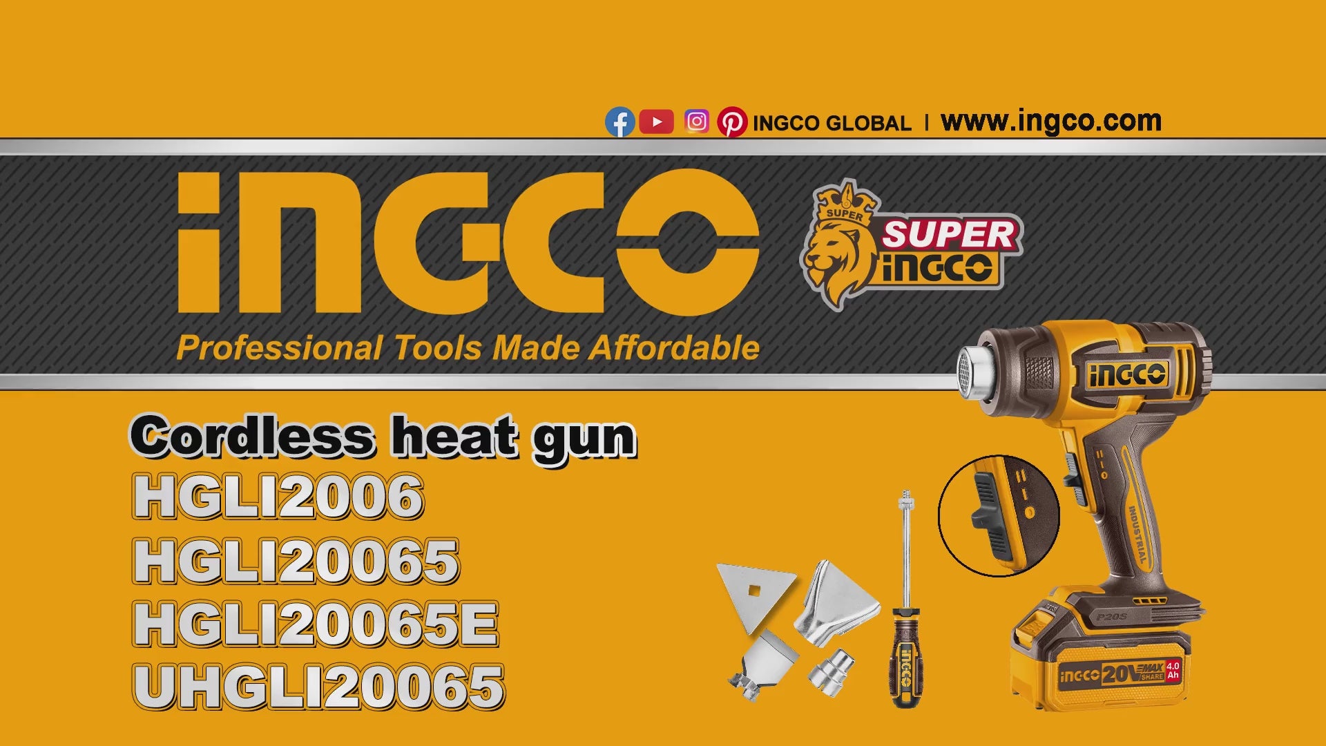 The Ingco 20V Cordless Heat Gun is designed for both professional and home applications, offering cordless convenience and powerful performance. With two temperature settings—300°C and 550°C—and dual airflow options of 100 and 200 L/min, it enables precise control for tasks such as paint stripping, plastic welding, shrink tubing, and more. The compact, ergonomic design enhances manoeuvrability and comfort during extended use. Battery and charger are sold separately, allowing you to use your existing 20V battery system for added efficiency.