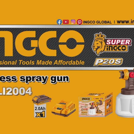 The Ingco 20V Cordless Spray Gun 800 ml/min offers a powerful and portable solution for painting, coating, and finishing tasks. Designed with a high-performance 20V lithium-ion motor, it provides a maximum flow rate of 800 ml/min at a spraying pressure of 0.1–0.2 bar, ensuring smooth and even paint application. The adjustable spray amplitude allows the user to control coverage for various surfaces and project types. With a generous 1000 ml paint container, it reduces refill interruptions and enhances work efficiency. Supporting up to 120 DIN-s viscosity, this unit accommodates different paint types with ease. For added convenience, the kit includes a 2.0Ah battery pack and charger, along with essential accessories for cleaning and viscosity measurement. The inclusion of copper nozzles ensures long-lasting durability, while the lightweight design promotes user comfort during extended use.