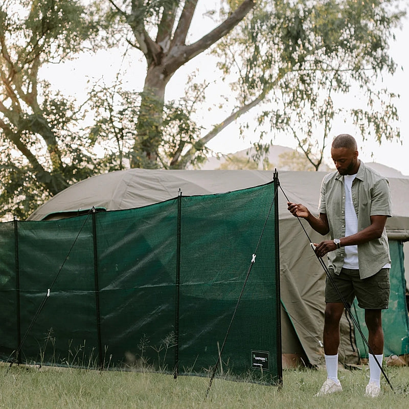 The Kaufmann X Camping Boma Wall provides a practical and reliable solution for creating private, enclosed outdoor spaces. Designed for versatility, it is ideal for camping, picnics, and outdoor events where added privacy and wind protection are essential. Constructed from high-quality, weather-resistant materials, this boma wall is built to withstand various outdoor conditions while ensuring long-lasting performance. Furthermore, its user-friendly design allows for quick and hassle-free assembly, making setup simple even in remote locations. Measuring 6m (19.7 ft) in length and 1.5m (4.9 ft) in height, it offers ample coverage to create a comfortable and sheltered environment. Supplied with essential accessories including tent pegs, guy ropes, and a carry bag, it is easy to transport, store, and deploy whenever needed.