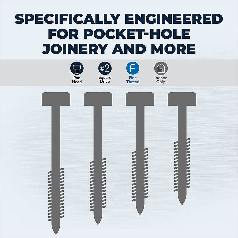 The Kreg 500/Pk Zinc Pocket-Hole Screws, Fine Thread, Pan-Head, 25mm (1") #6 are engineered for indoor projects with limited exposure to moisture. Constructed from zinc, they offer sufficient rust protection and serve as an economical alternative to Blue-Kote™ and stainless steel screws. The fine thread ensures controlled insertion and strong engagement in softwoods, plywood, and composite materials. Moreover, these screws are compatible with Kreg® Pocket-Hole Jigs, Micro-Pocket™ Drill Guides, Pocket-Hole Machines, Kreg® Square-Drive Bits, and Micro Pocket-Hole Plugs, enabling versatile and precise pocket-hole joinery.