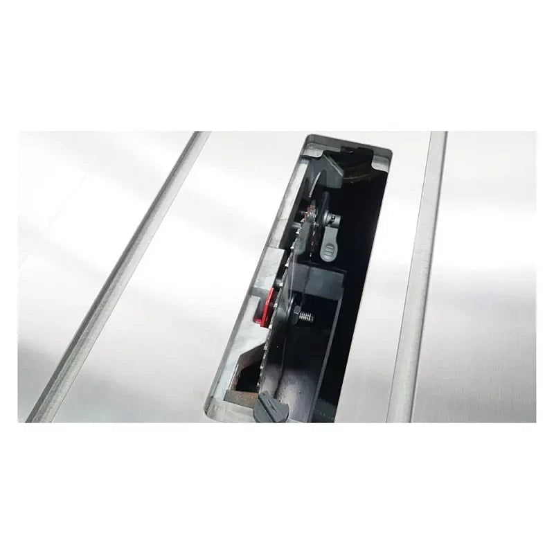 * The hybrid fence on the Laguna Fusion offers the best of European and American fence features. This fence is NOT designed to be used on the LEFT side of the blade! Rail or tube on LEFT side is provided only to make the ON/OFF switch position adjustable.