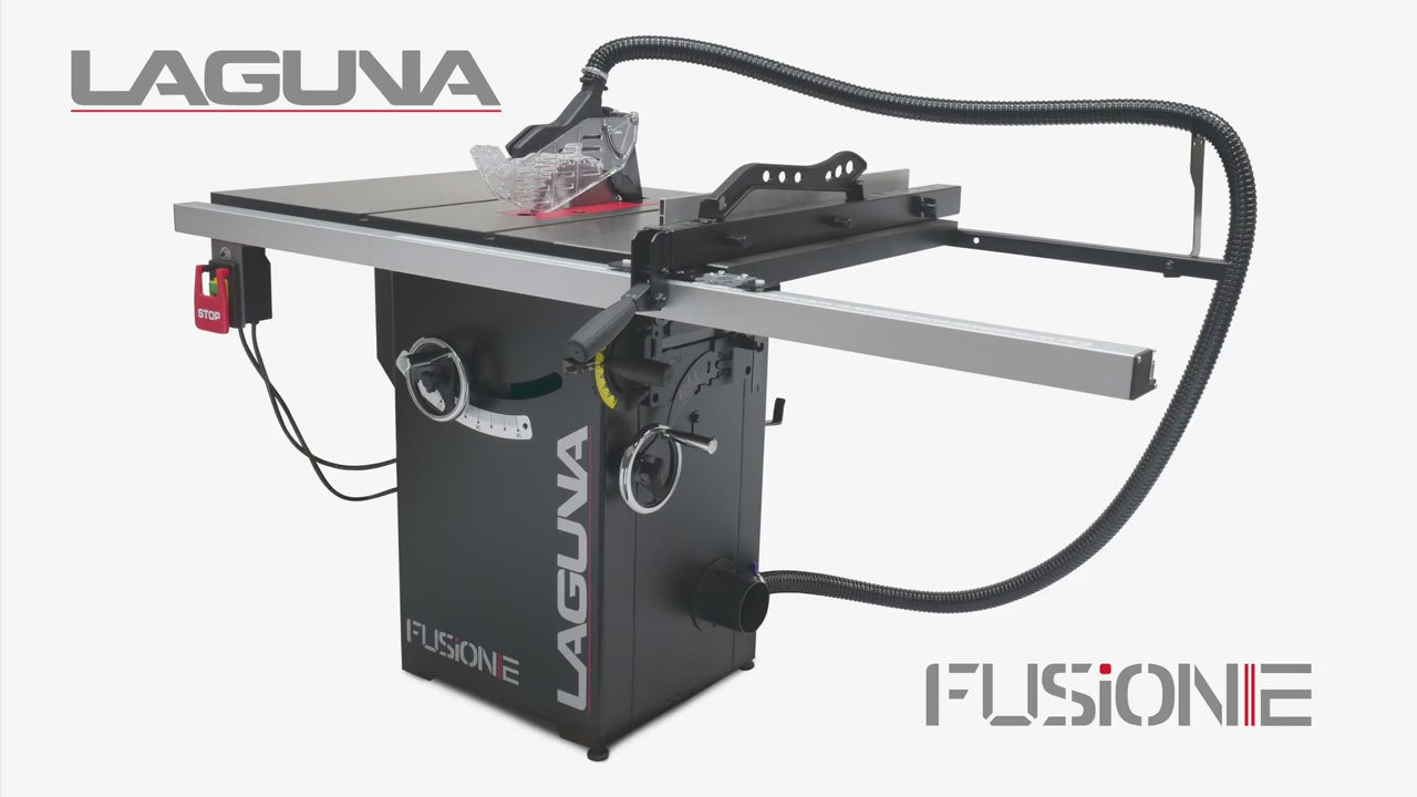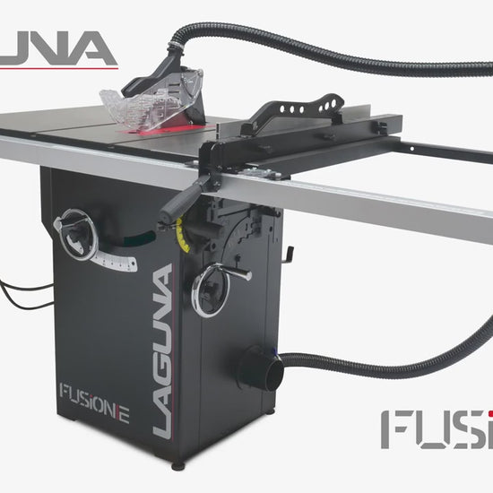 The Laguna F2 Fusion Table Saw is engineered for demanding woodworkers who require exceptional precision, reliability, and cleanliness. Featuring a 1.75HP TEFC motor and cabinet-mounted design, this saw delivers consistent power while maintaining stability with its cast iron table and wings. The hybrid European Hi/Low fence combines the best of European and American fence designs, providing precise rip cuts with a 37" (939.8mm) right rip capacity, though it is not designed for use on the left side of the blade. The Fusion Dust Collection System utilises over/under collection with sealed bottoms, ensuring a clean and safe workspace. Permanently lubricated bearings, Acme screws, integrated tool storage, polished handles, and a premium arbor enhance long-term performance. The saw is supplied with a 10" (254mm) x 40T carbide-tipped blade, riving knife, splitter, camlock T-shape fence, miter gauge, and additional included tools, enabling immediate and versatile woodworking applications. Digital readout (DRO) for blade tilt further improves precision and ease of use, while mobility built into the cabinet allows repositioning without compromising stability.