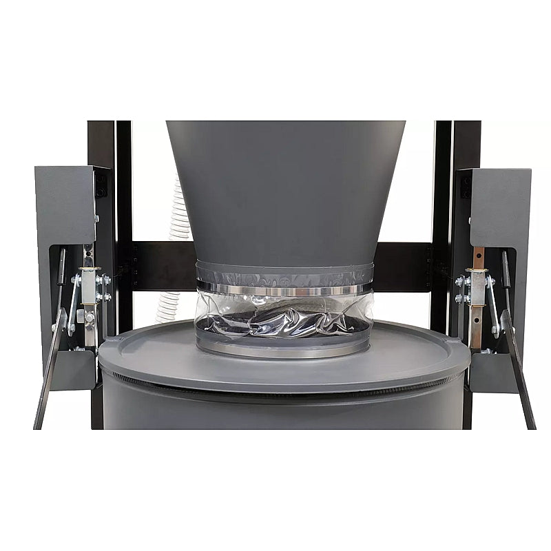 Moreover, the advanced two-stage cyclone system efficiently captures heavy debris before fine particles reach the 1 Micron canister filter, thereby enhancing filtration efficiency and reducing maintenance frequency. Dust is collected into a clear plastic bag housed within a durable steel drum, allowing for easy monitoring of fill levels.