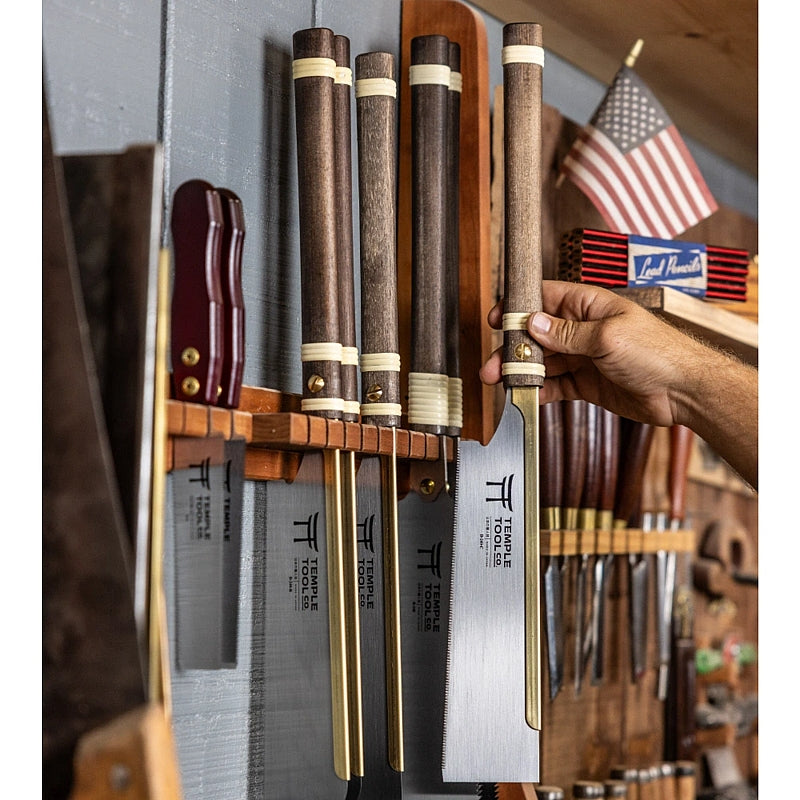 The Temple Tool Dozuki Pull Saw (D-240-C) is expertly crafted in Japan to deliver unmatched accuracy and elegance for fine woodworking. Designed with a 240mm (9.5") high-grade SK85 Japanese tool steel blade and fine 25 TPI crosscut teeth, it excels at precise shoulders, dovetails, Kumiko, and other intricate crosscutting tasks on both soft and hard woods. The blade is supported by a premium solid brass back, ensuring sturdiness while allowing easy blade replacement. Its handle, made from Japanese Wingnut wood with natural rattan wraps, provides a comfortable grip and rich aesthetic appeal. The squared blade end quickly distinguishes it from rip-cut versions, making it ideal for beginners and professionals seeking a dedicated fine crosscut saw. Pair this saw with the Rip-Cut version for a complete joinery solution.