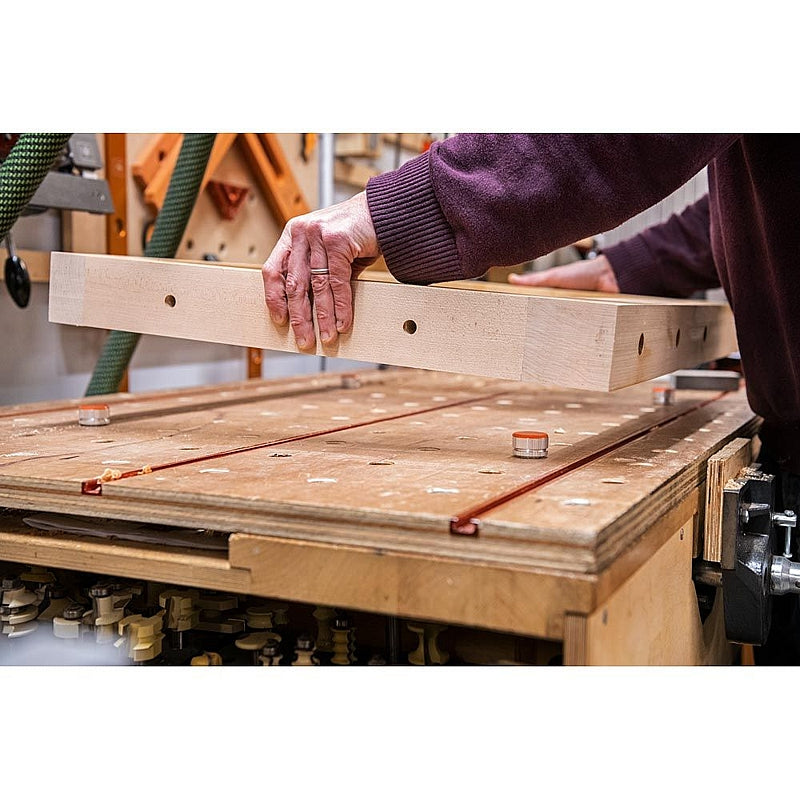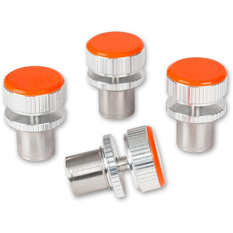 These 20mm bench dogs feature a 30mm diameter, height adjustable and lockable non-slip pad. The dogs fit perfectly in a 20mm chamfered dog hole. The adjustment allows you to use them for levelling, supporting uneven work pieces or those with a height differential. Each dog is individually adjustable. A locking ring ensures complete stability. The minimum height is 20mm, the maximum 29mm. The high friction anti-slip pads keep your work in place. Fits to any 20mm dog hole in a UJK Multifunction bench or MFT.