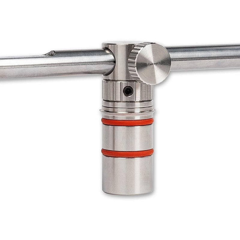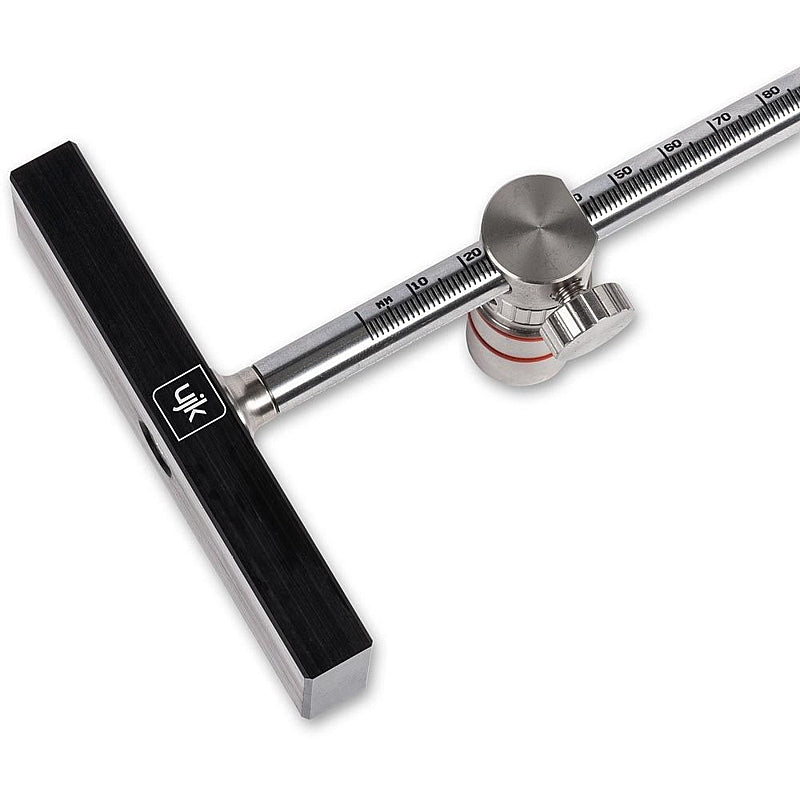 Supplied with a pair of fixing posts and a sliding bar, these enable small adjustments to be made. You can leave the setting bar clamped in position to the dogs when removing the PGS from the table for repeat tasks. For convenience, the fixing posts, similar in function to the UJK Super Dog, can be used as low profile bench dogs when not used in the kit. The sliding bar has a scale range of 0 to 96mm.