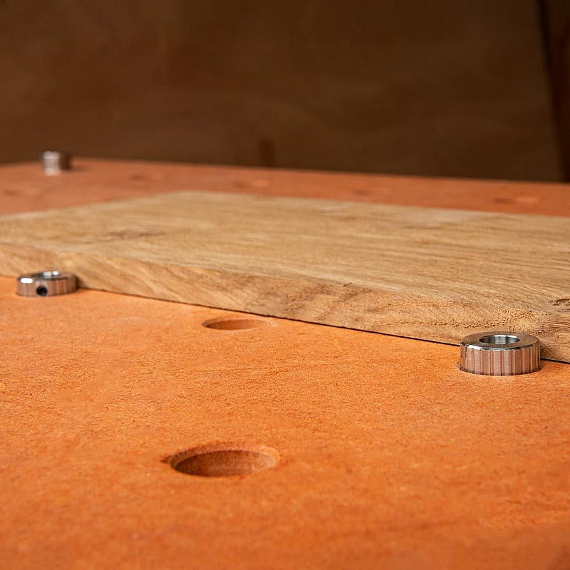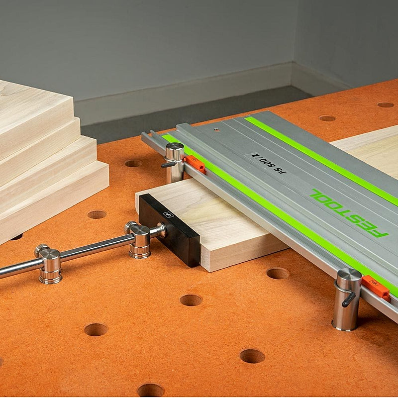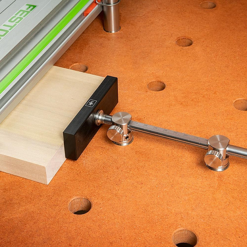 Made from stainless steel, the UJK Parf Repeat Stop (PRS) has been designed to make accurate repeat cuts of the same length when using a track saw and guide rail on the Festool MFT3, MW1000 or UJK Multifunction Workbench. It's also fantastic for use with custom 20mm hole pattern benches made with the UJK Parf Guide System. A great addition to your workshop, the PRS complements this modern way of working.