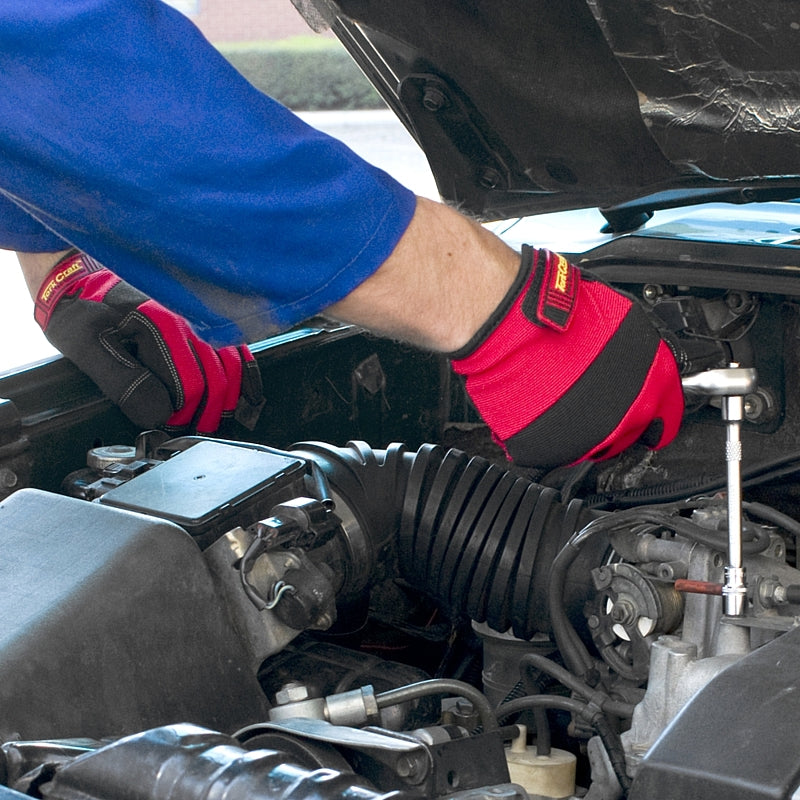 The Tork Craft Red All Purpose Work Gloves (X-Large) are designed to deliver comfort, dexterity, and protection in automotive work, motorcycle mechanics, package handling, and power tool applications. Made from synthetic leather and spandex, these gloves provide a secure and comfortable fit with an adjustable strap wrap. Lycra panels between the fingers allow free movement and stretching, while the touch finger feature enables seamless use with touchscreen devices. Furthermore, the gloves offer excellent wear resistance and are washable, ensuring long-lasting usability and practicality for demanding tasks.